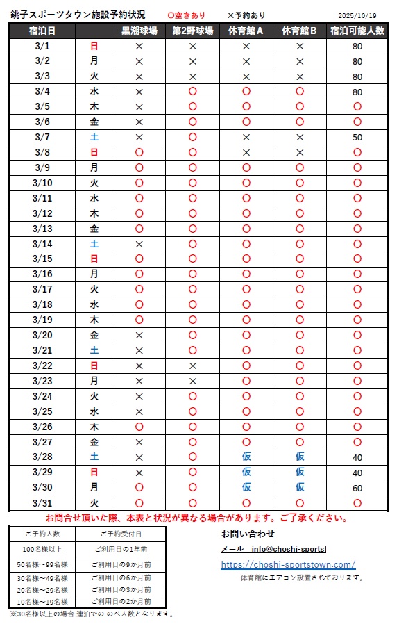 2026年3月の施設予約状況をお伝えいたします。