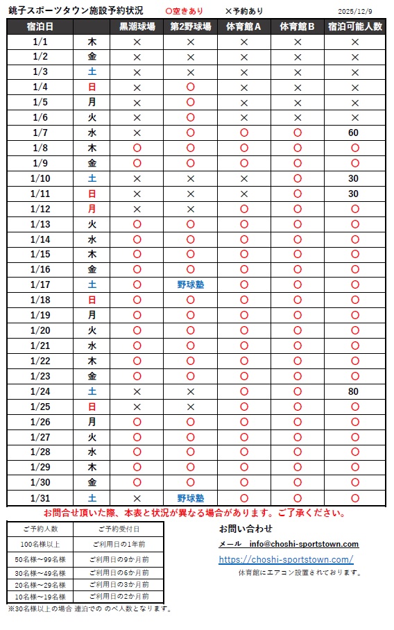 当施設の仮予約は1週間となっております。 仮予約が解除されて空く場合もございます。